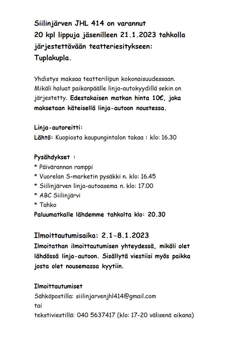 Tuplakulpa teatteriesitys Tahkolla 21.1.2023