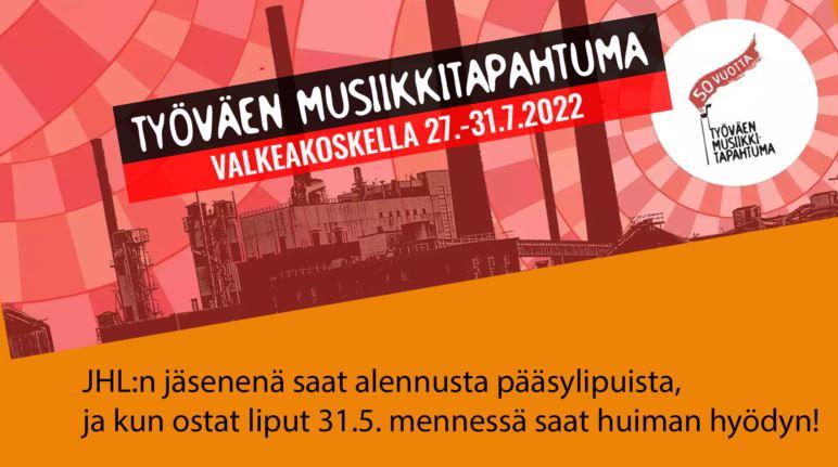 Heinäkuussa nautitaan huippukeikoista ja juhlistetaan Työväen musiikkitapahtumaa Valkeakoskella – Ammattiliitto JHL:n jäsenenä saat tuntuvan alennuksen festarilipuista!